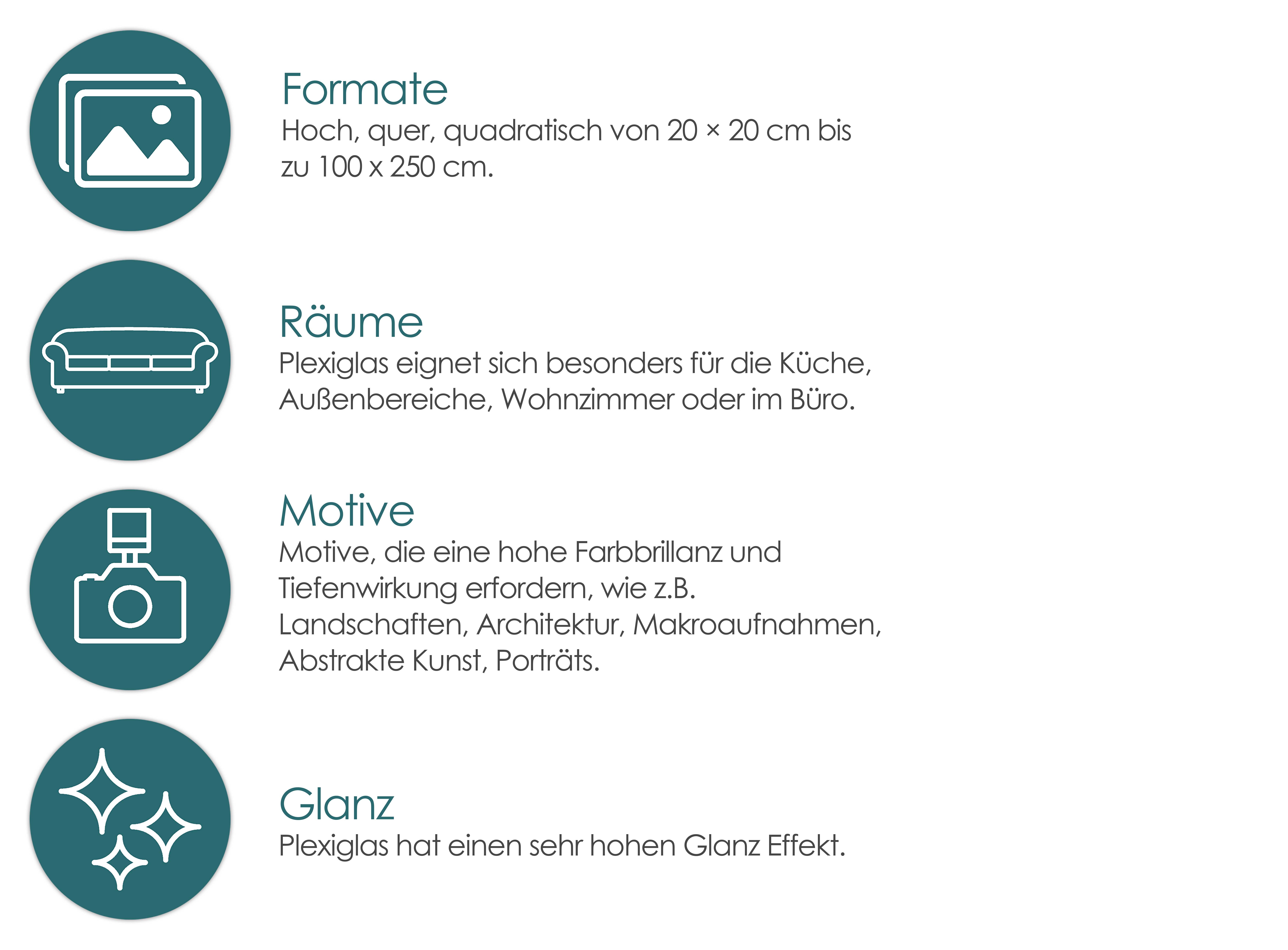 Egal, ob Sie sich für Plexiglas® oder Acryl entscheiden, die Farben des Bildes kommen leuchtend und strahlend zur Geltung. Ein Must-have für eine farbenfrohe Inszenierung.